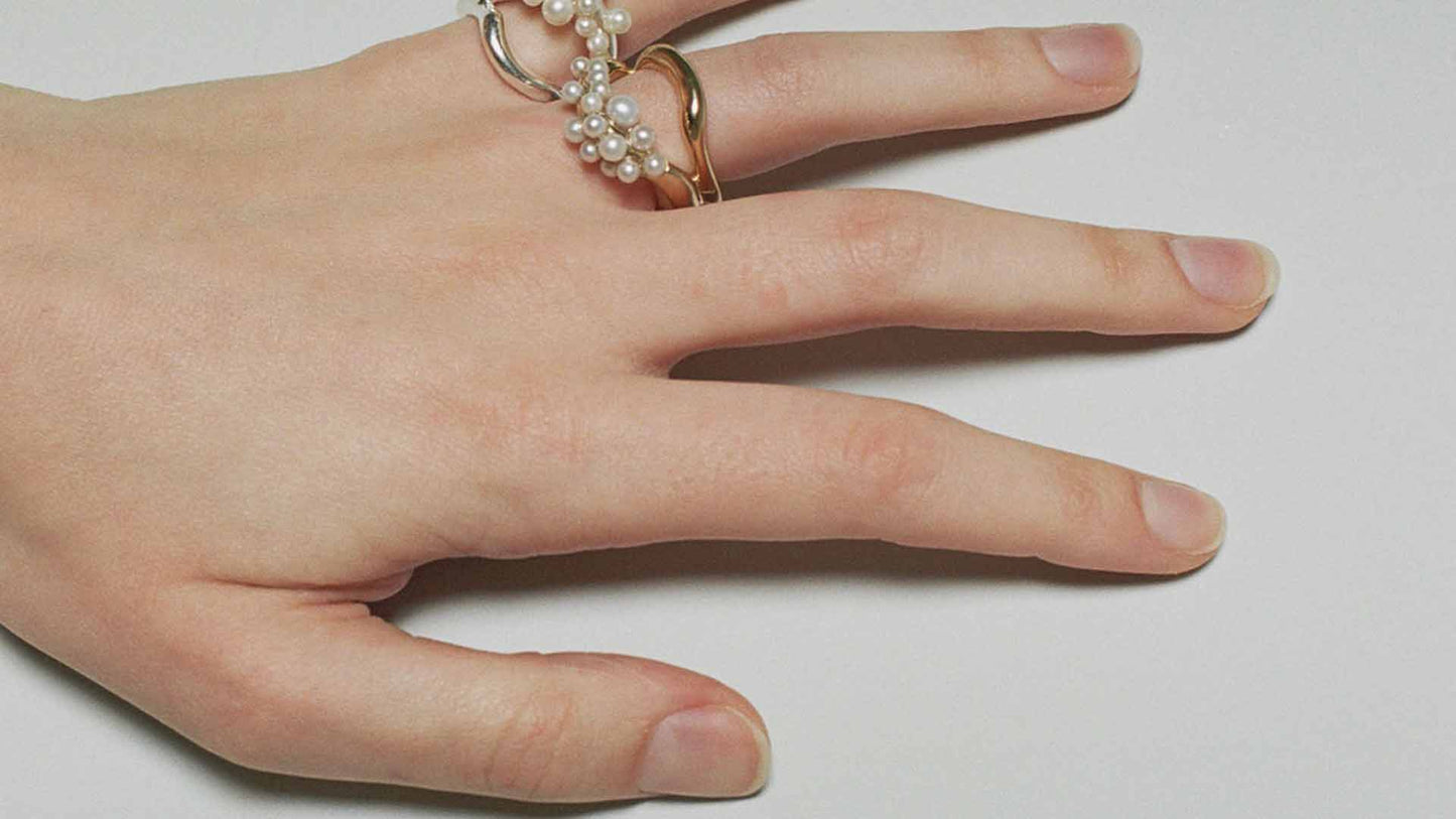 Double wave gold plated silver ring set with a cluster of fresh water pearls.