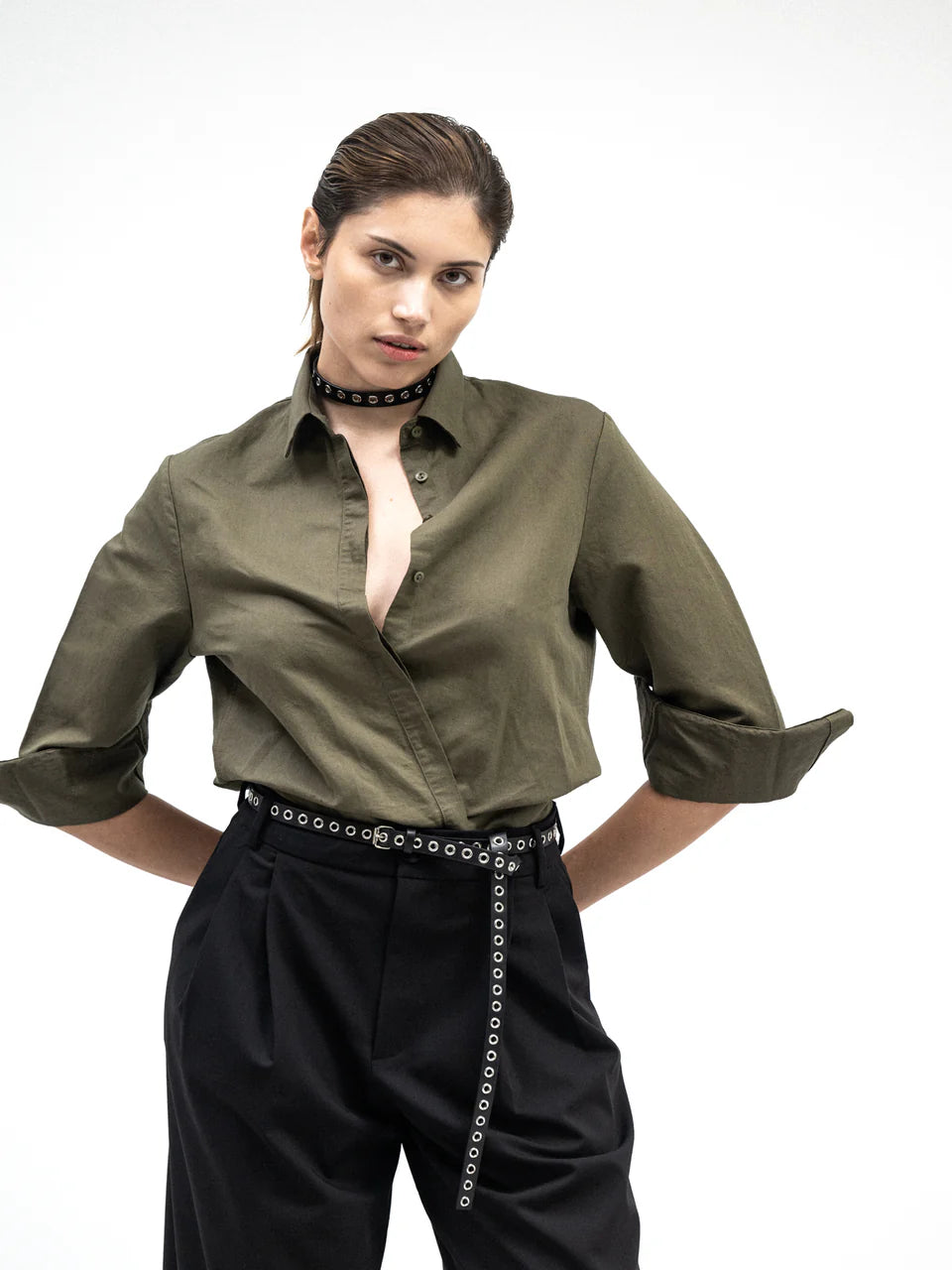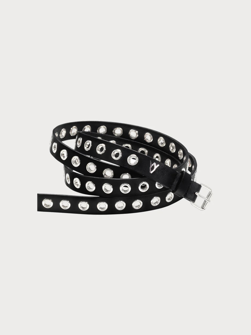 The Eyelet Belt 1.6 offers sleek versatility with its slim design and full adjustability. Style it long for a bold look or keep it snug for a streamlined silhouette, perfect for wearing at the waist or hips to suit any ensemble.