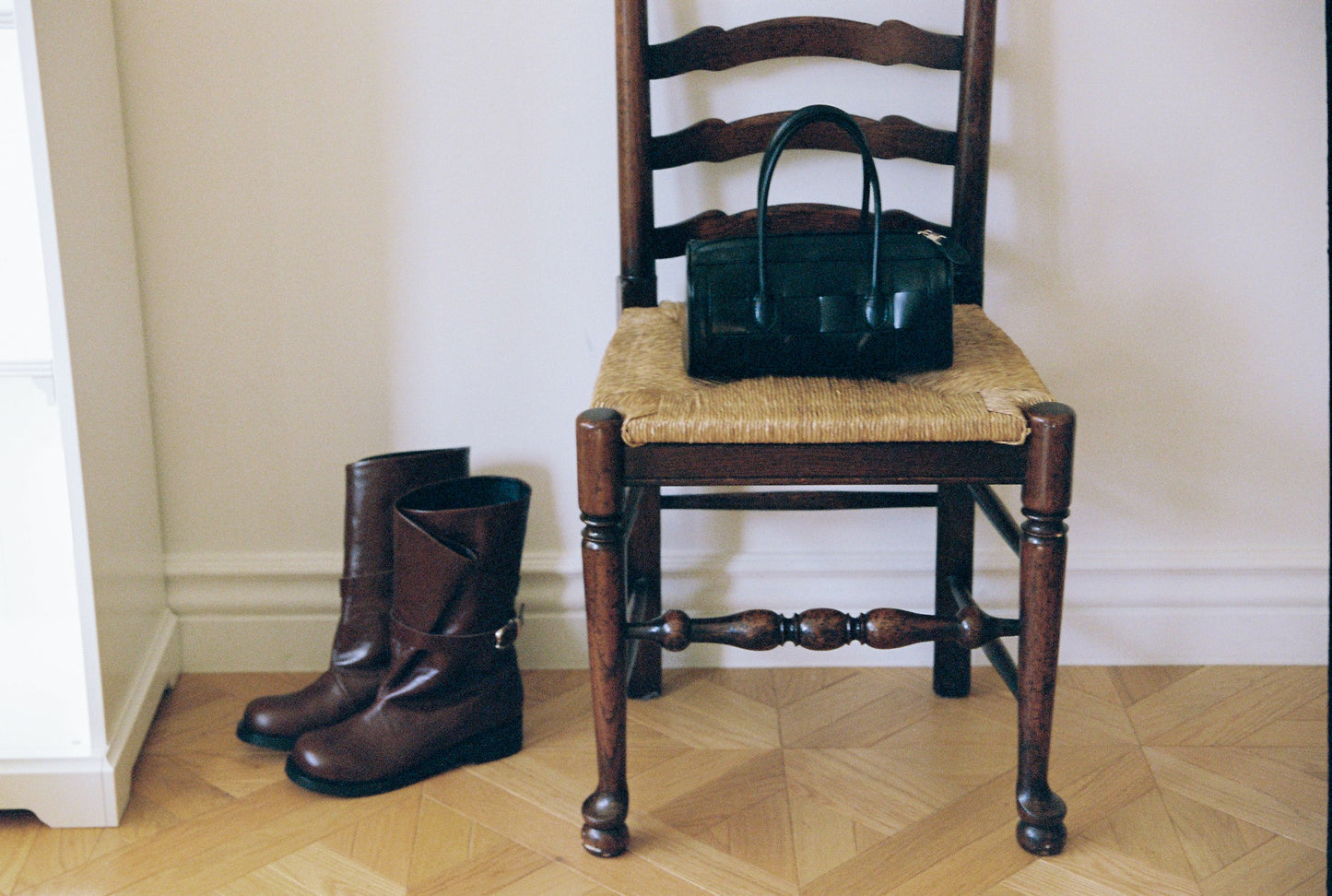 The boots have a minimal yet edgy design that emphasizes a chic mood, and
