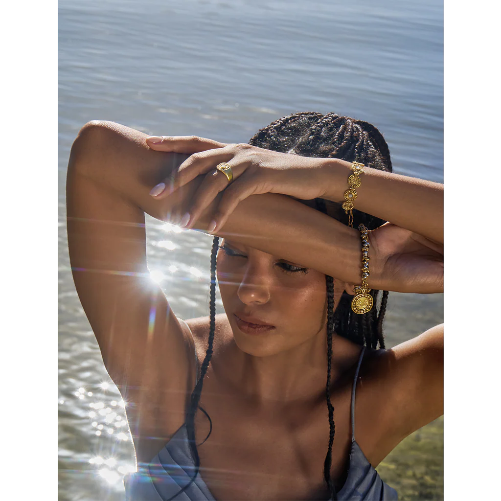 Signet ring in brass plated with 3 microns of gold and semi-precious stones.