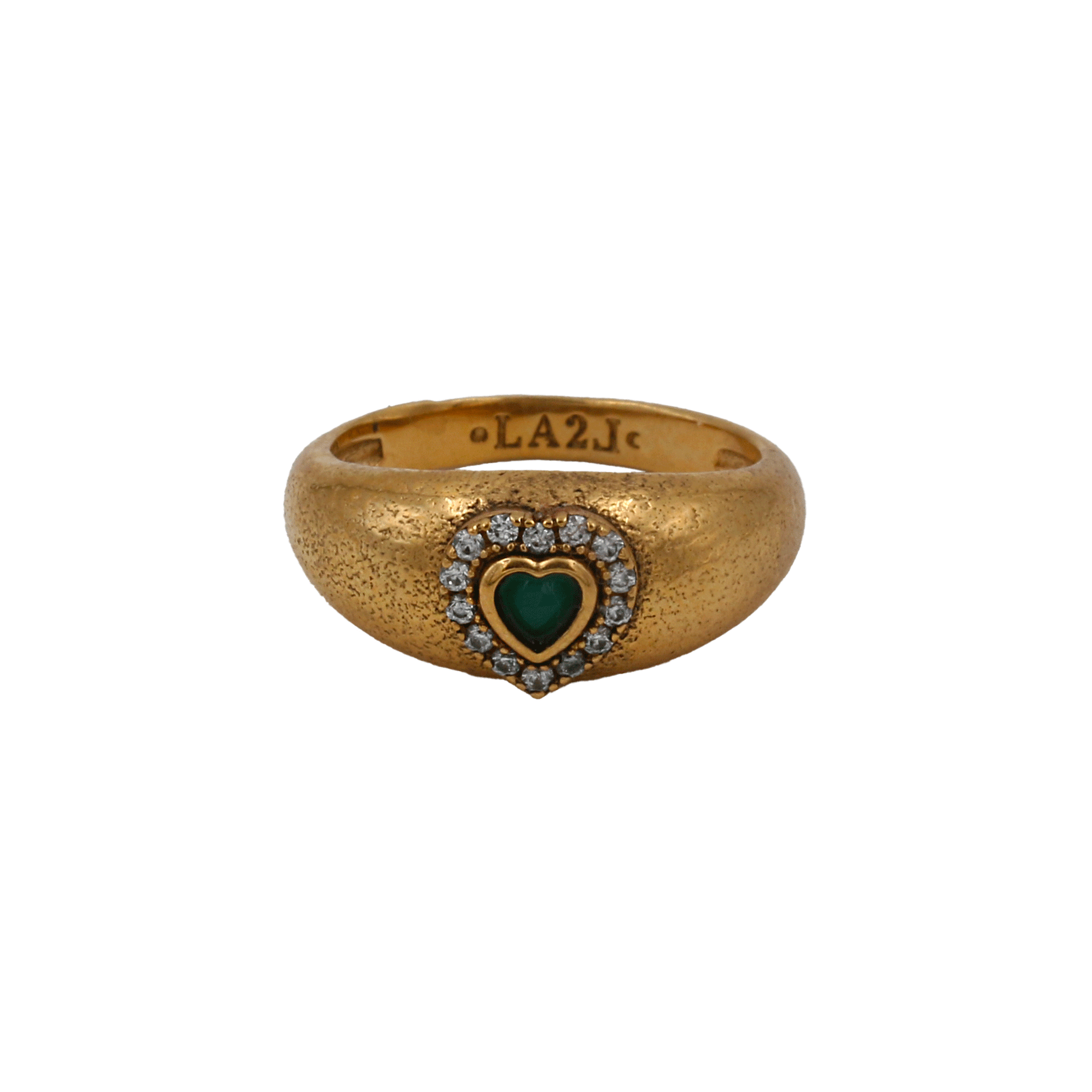 Ring in 3 micron 999/1000 gold-plated brass, semi-precious stones and Swarovski rhinestones. Heart-shaped central stone.