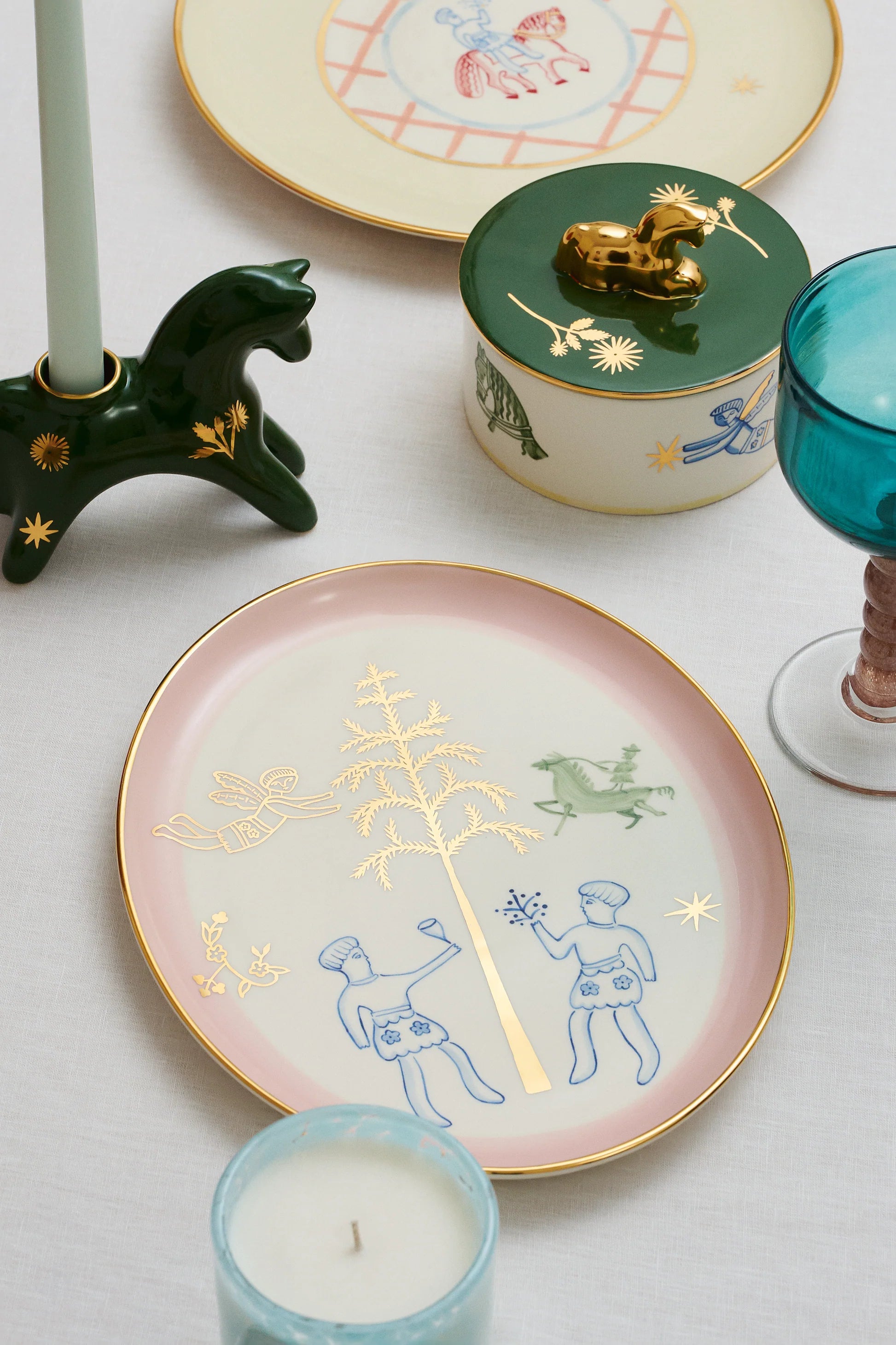 Vechornytsi Oval Plate. The painted design is inspired by motifs from naïve embroidered rushnyky, Ukrainian Christmas festivities, and the archetype of the Tree of Life, interpreted in the form of a Christmas tree. Each plate is crafted and painted by hand, with glaze and gilding, ensuring the uniqueness of the ceramic item, support for artisans, and the preservation of tradition. This symbolic piece is meant to become a meaningful and touching gift, a cherished family keepsake, or simply a beloved holiday object.