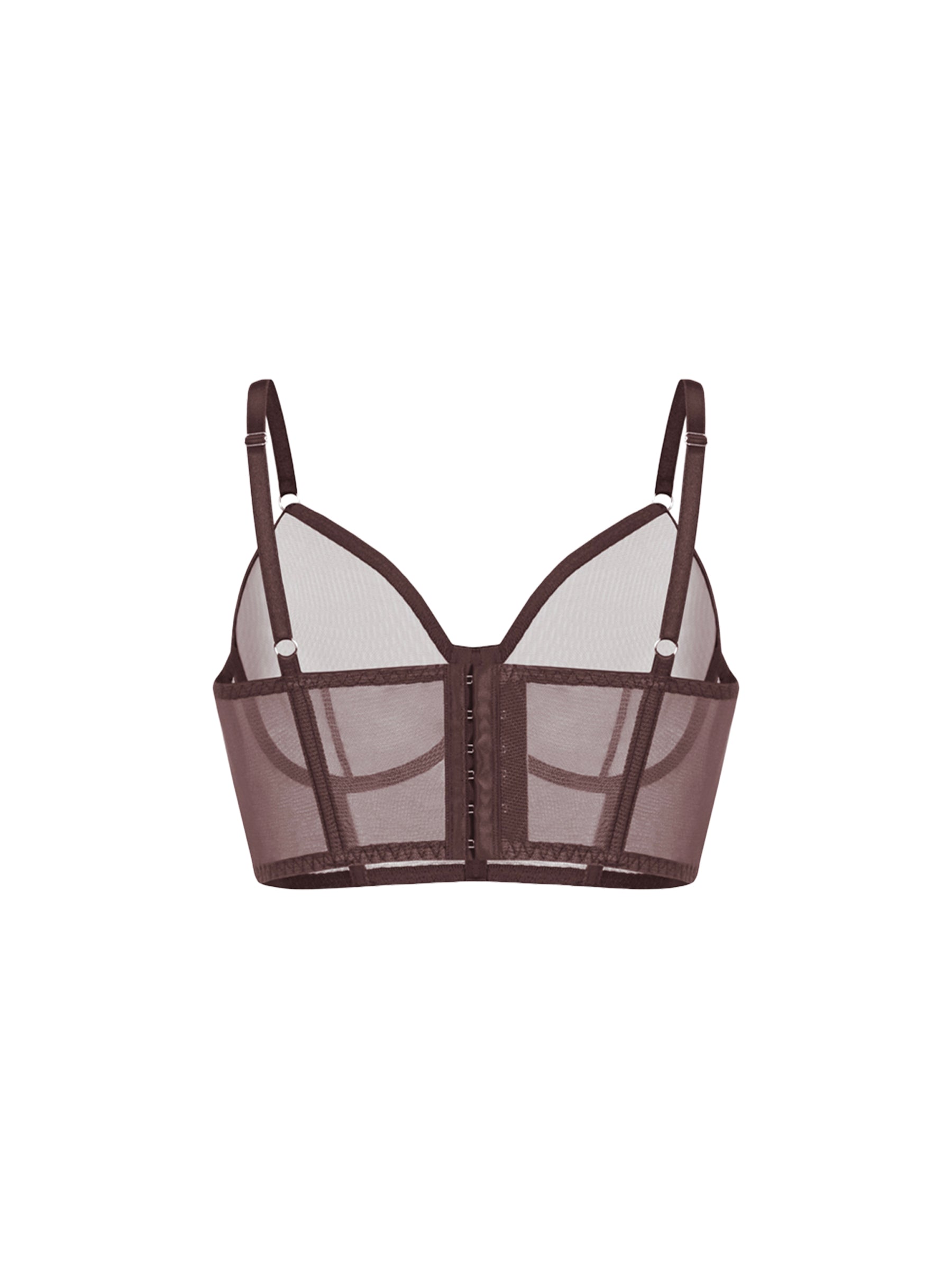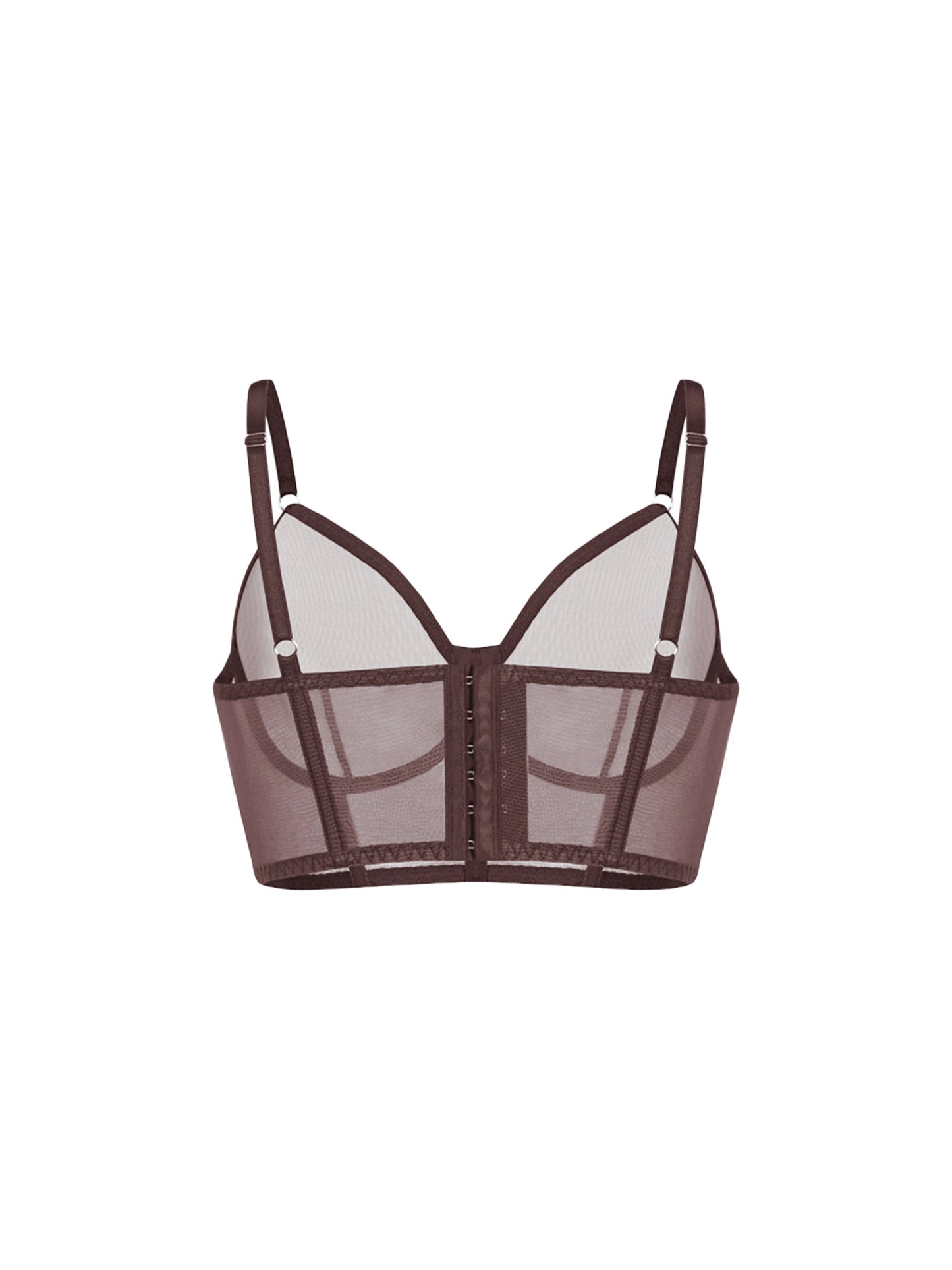 The Unnamed 2.0 Gravity Brown Corset Bra is lightweight and provides a breathable fit that enhances your silhouette, offering comfort and style. The rich brown shade brings a sense of warmth and sophistication to your wardrobe. This bra features adjustable straps and a classic hook-and-eye closure, ensuring a customized fit for all-day comfort.