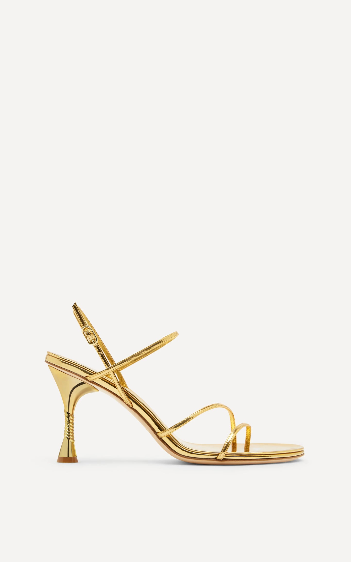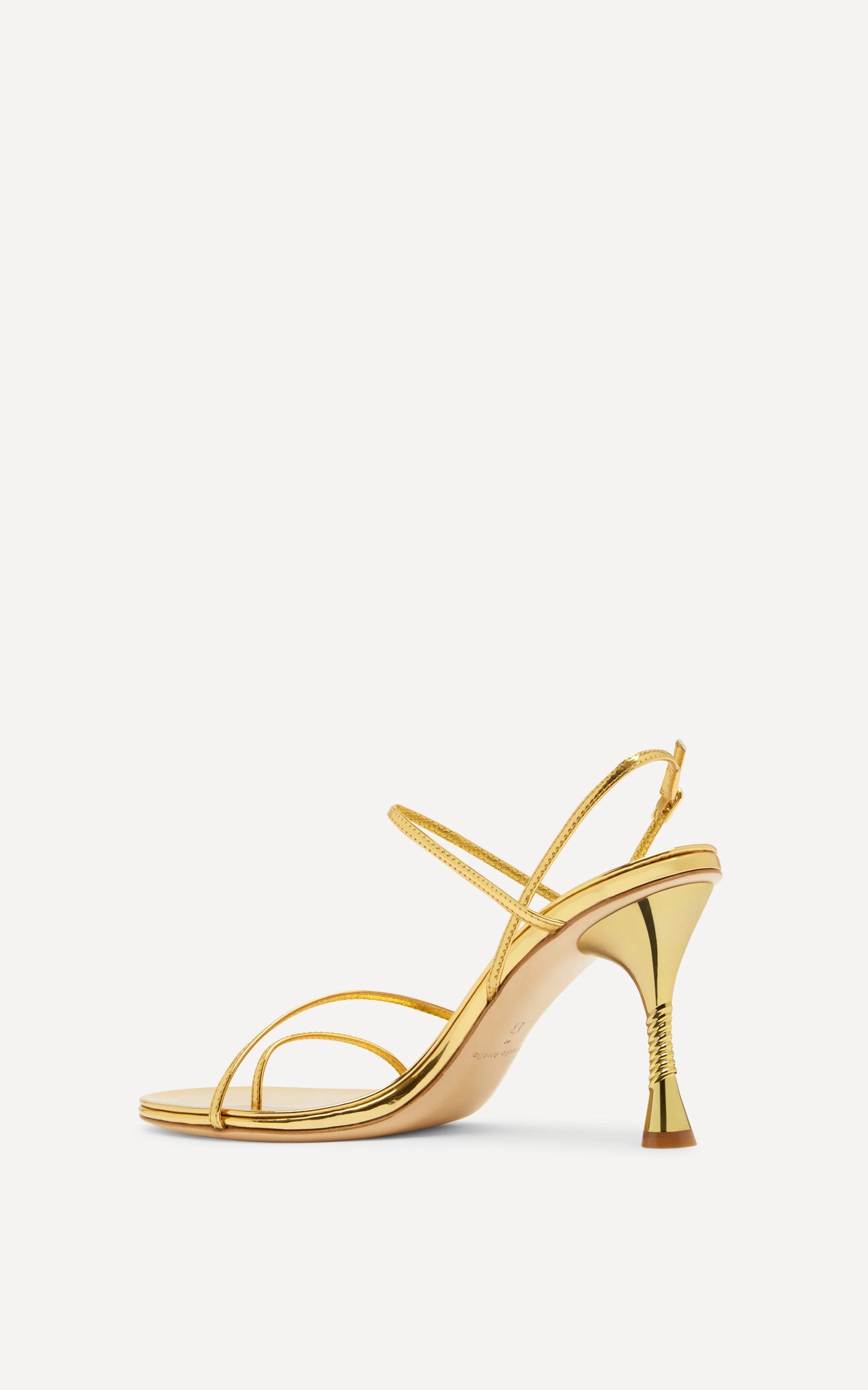 The HELIX 90 Sandal Gold is a chic and modern heel in a gorgeous gold color.