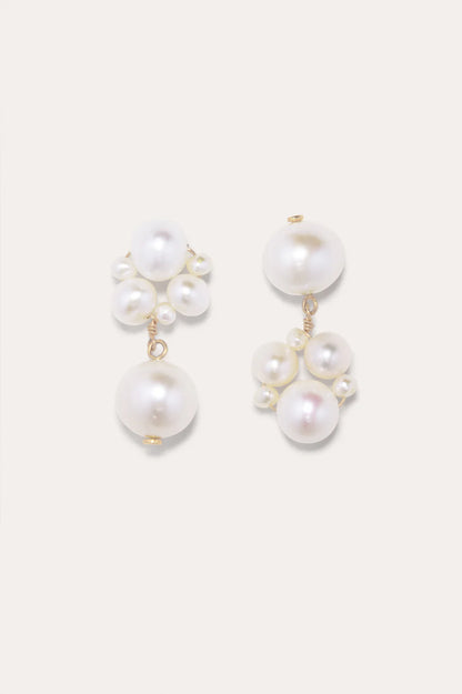 Freshwater pearls connect to recycled 18ct gold vermeil earrings, secured with earring posts and butterfly backs.