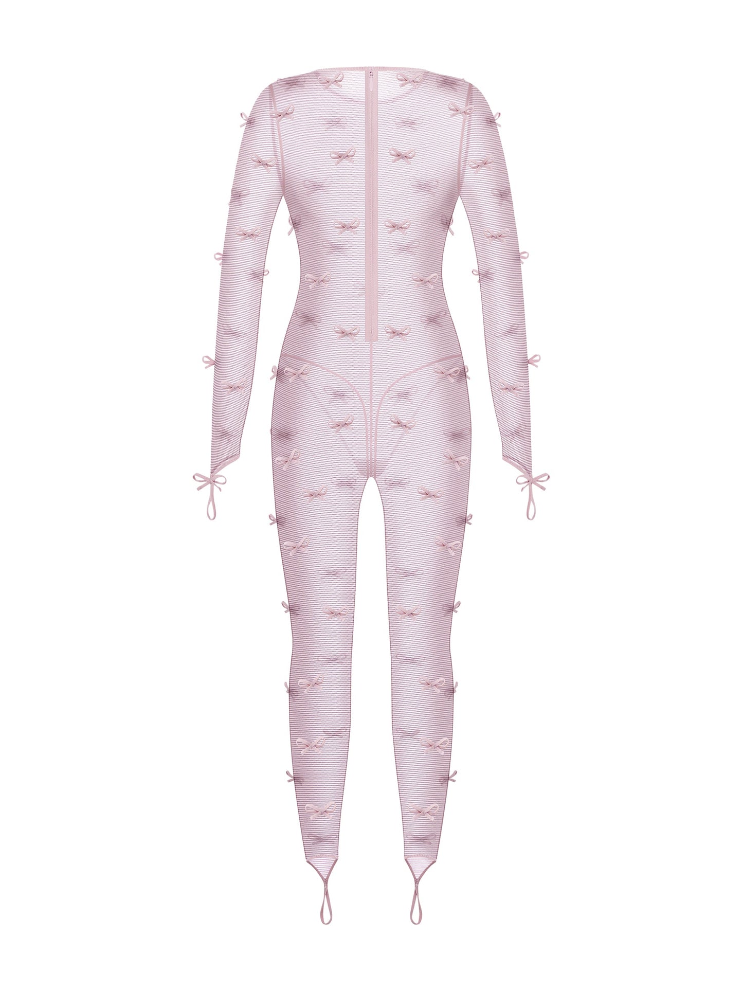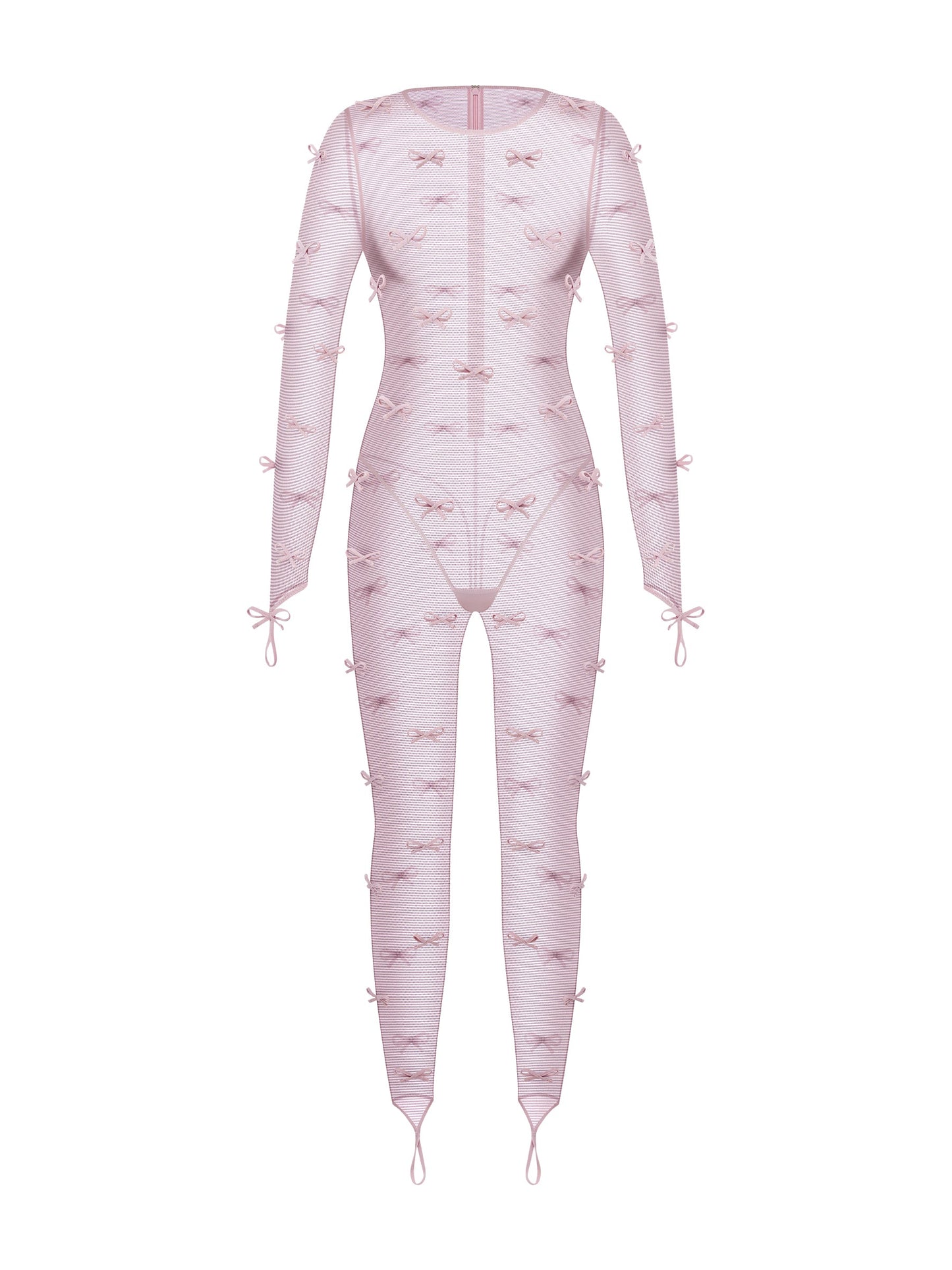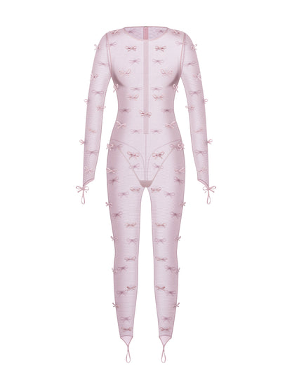 Soft, but make it spicy — the Emery Pink Catsuit is a total showstopper. The sheer lace, flirty bows, and long sleeves give it that perfect mix of sweet and sultry. The closed-back keeps it sleek, while the zip-up design makes getting ready a breeze.