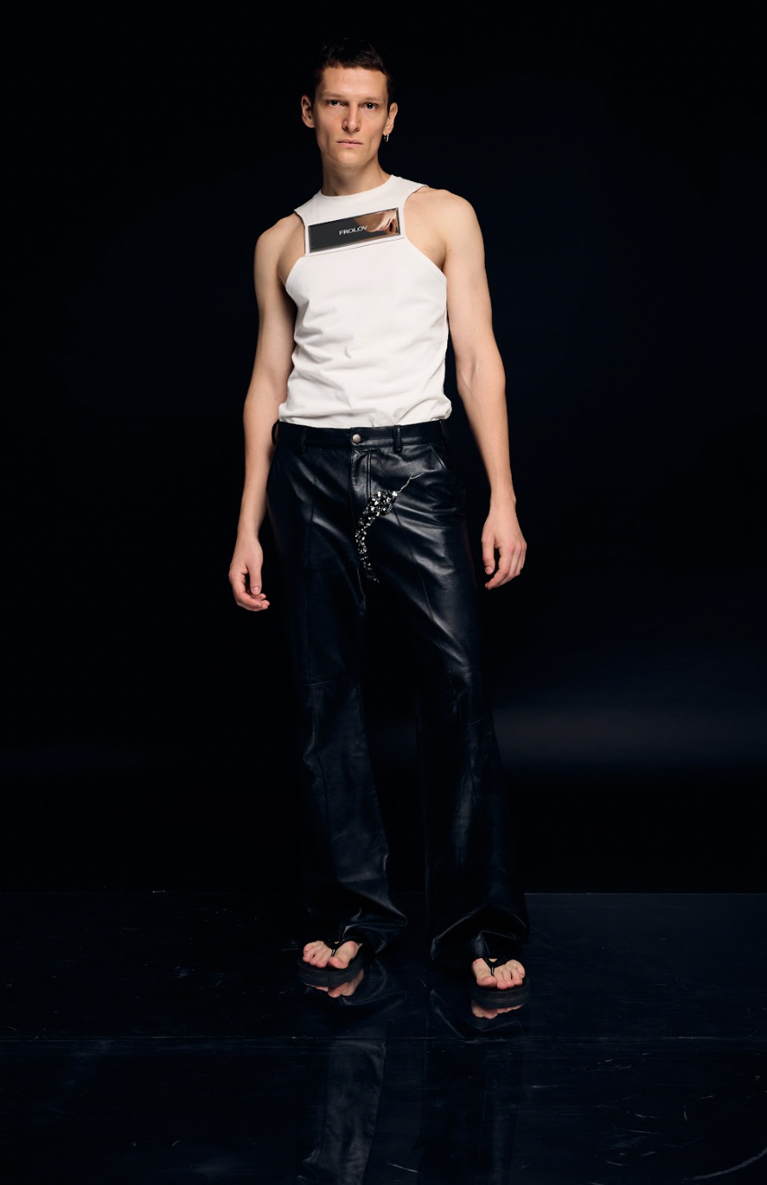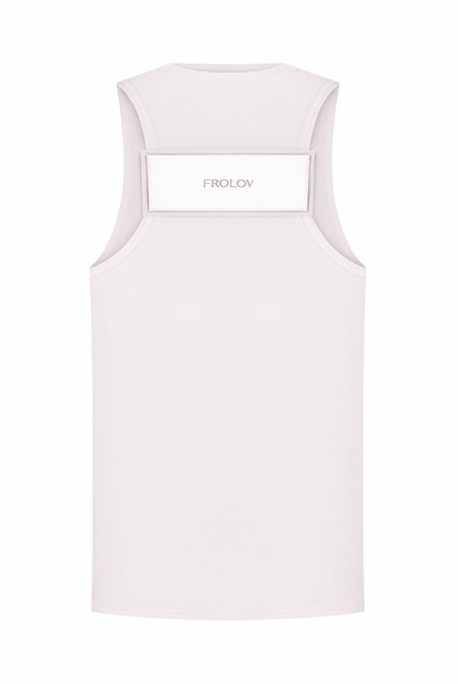 White cotton tank top with a built-in mirror detail — minimal, stylish, and unique.